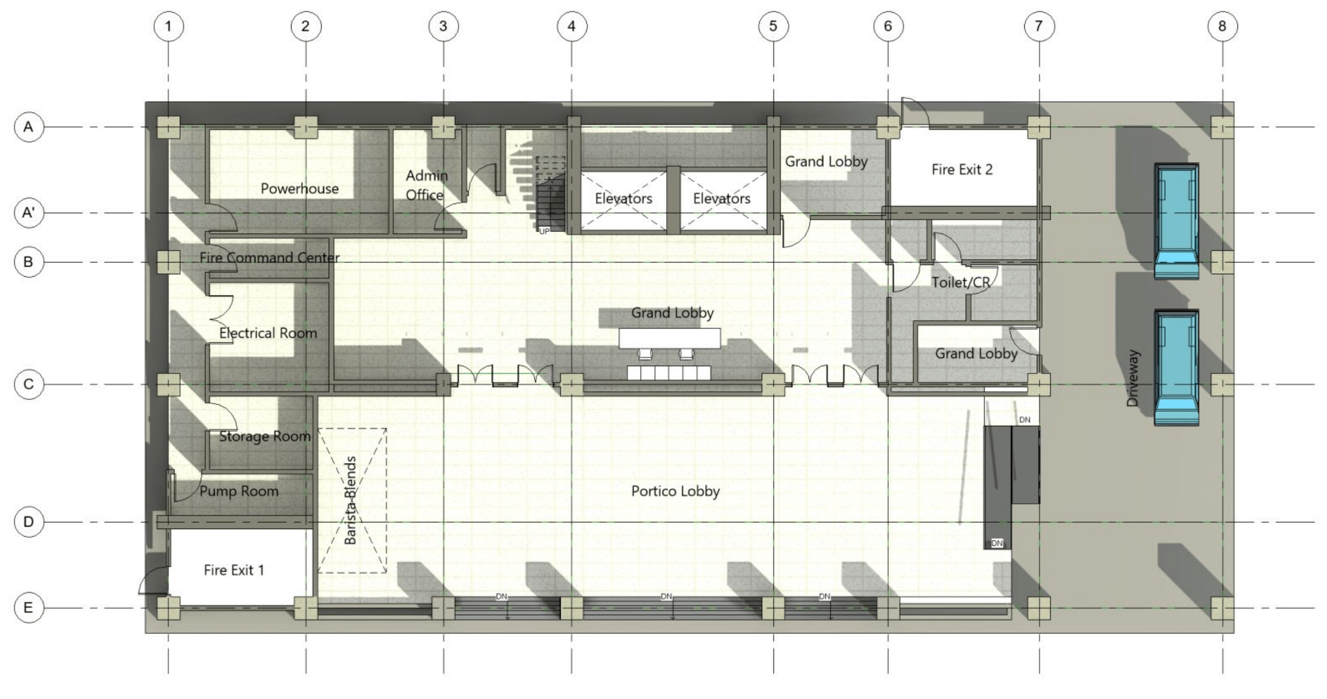 👆 Click the building to view floors & rooms